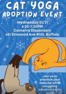 Ready for some paws and poses? Join us in person at Canterra for a fun Cat Yoga adoption event hosted with the awesome folks from the City of Buffalo Animal Shelter. Stretch out, relax, and meet some adorable adoptable cats looking for their forever homes. It’s a purrfect way to unwind and maybe find your new furry friend! This is a first-come, first serve donation based event. Please consider donating to the amazing shelter that helps some of the most in need in our city.