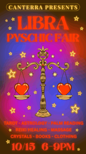 Welcome to the Libra Psychic Fair! Join us for a day filled with mystical experiences and insights. This time we are celebrating all things LIBRA! Our talented vendors will be offering readings to help guide you on your journey. Whether you’re seeking clarity on love, career, or life in general, this night can help shed light into the unknown in life. Come by and explore the spiritual world with us. Don’t miss this opportunity to connect with your inner self and discover what the future holds for you!