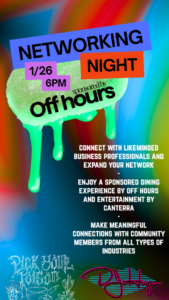 Looking to unwind and make some valuable connections? Join us for an in-person evening at Canterra sponsored by Off Hours, made for anyone in the community. Whether you’re making new business connections or just learn about a different industry, this is the perfect spot to network after hours. Grab a drink, share some laughs, and build your community in a laid-back setting. Entertainment by DJ Hogan and food catered by Pick Your Poison. Don’t miss out on a night of great conversations and new possibilities!