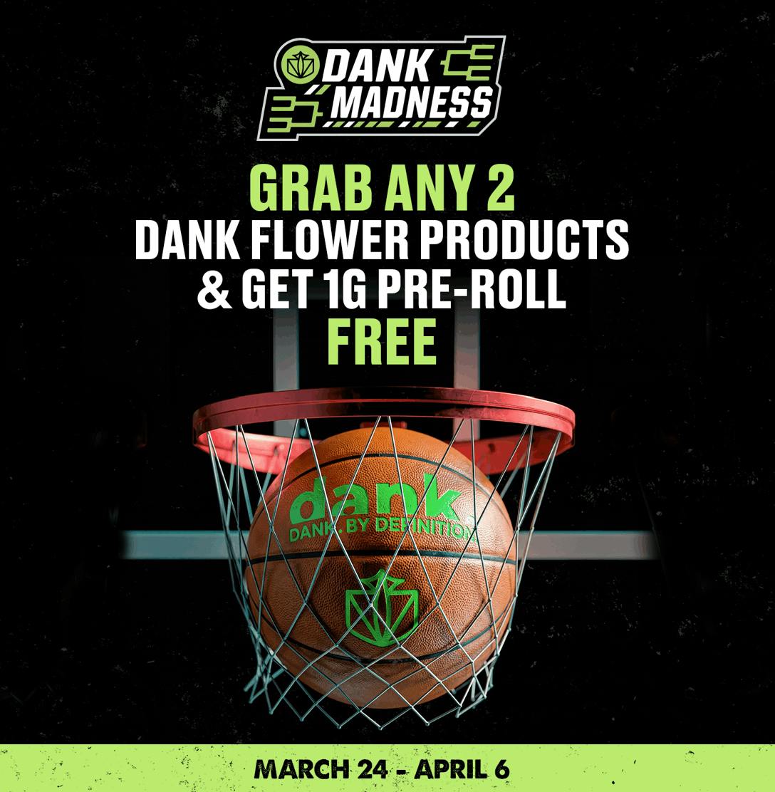 Dank Madness – Buy 2 Dank Flower Products, Get a 1g Pre-Roll Free